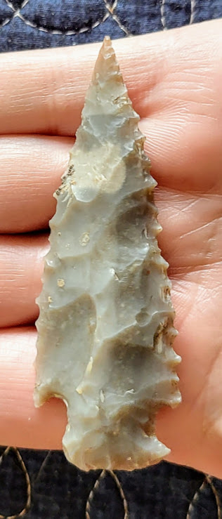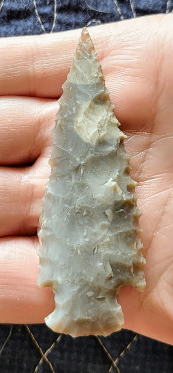 This large Ensor point has a nice serrated edge and was made from brown flint. It was discovered in Uvalde County, Texas and come with a Rogers COA.