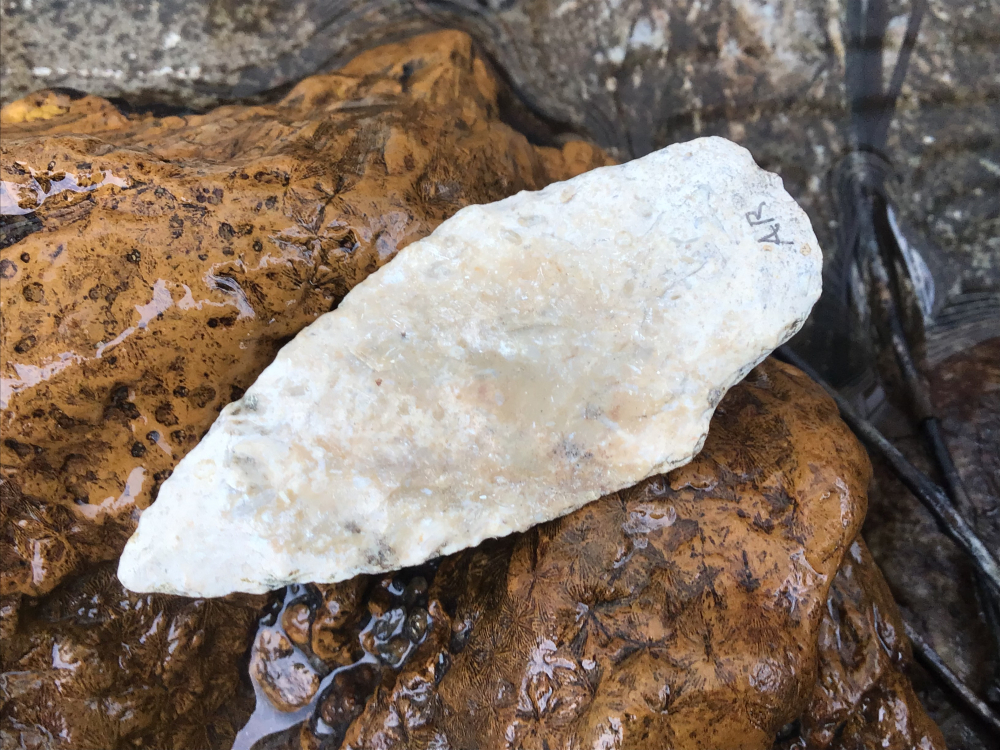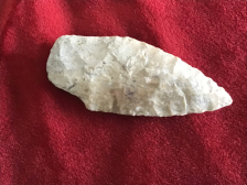 The chert is a heat treated Burlington recovered near the Arkansas River in Osage County, OK out of the Lyle Nickols' collection. It is colorful, well flaked and thin. Part of the Hopewell Culture, it has a Bill German COA and I have the shipping.