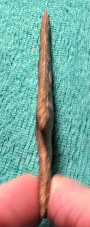 An amazingly thin Waubesa point that has it all - length, symmetry, and great elongated base! This 3.8" point was found in Blunt Co., Tennessee and comes with a Dwain Rogers COA. If you're looking for a killer point that jumps out of your frame, this is it!