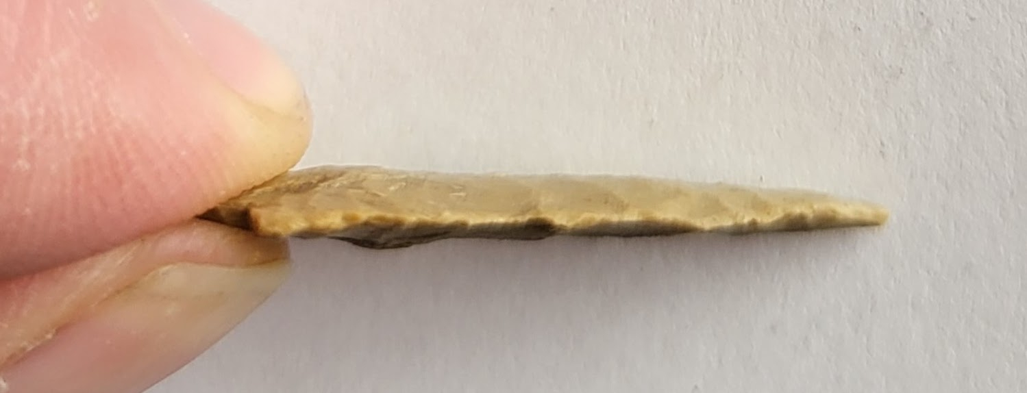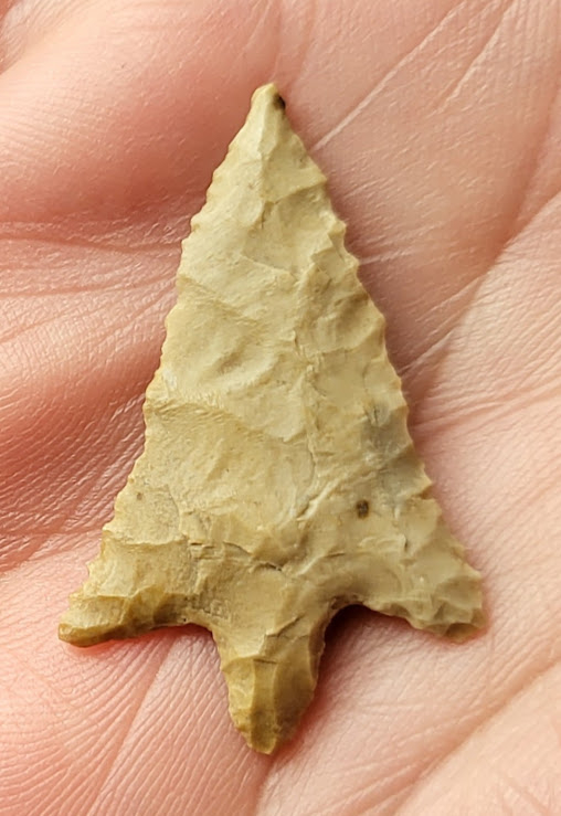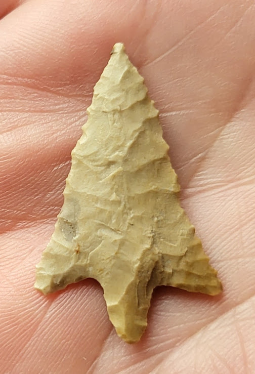 This Perdiz is made from tan chert, and it was found in Frio County, Texas. The point comes with a Rogers COA.