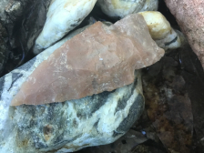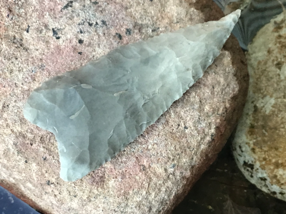 Made of gray Edwards, this Kinney Knife was recovered in Kendall County and has a nicely thinned base and pressure flaked lateral edges. It has a Bill German coa and I have the shipping.