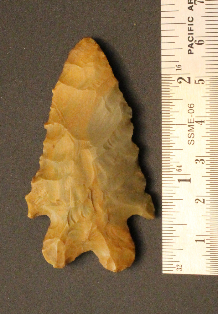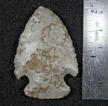 This is a fantastic artifact. It has a Bennett COA. Jim says mottled flint on the paper. My personal opinion is Carter Cave Chert. It is thin and well flaked and an outstanding example of the type. It is 2 and 3/8" long. This is one fine early archaic point. Guaranteed authentic. Shipping is $10.00 small prority mail box.