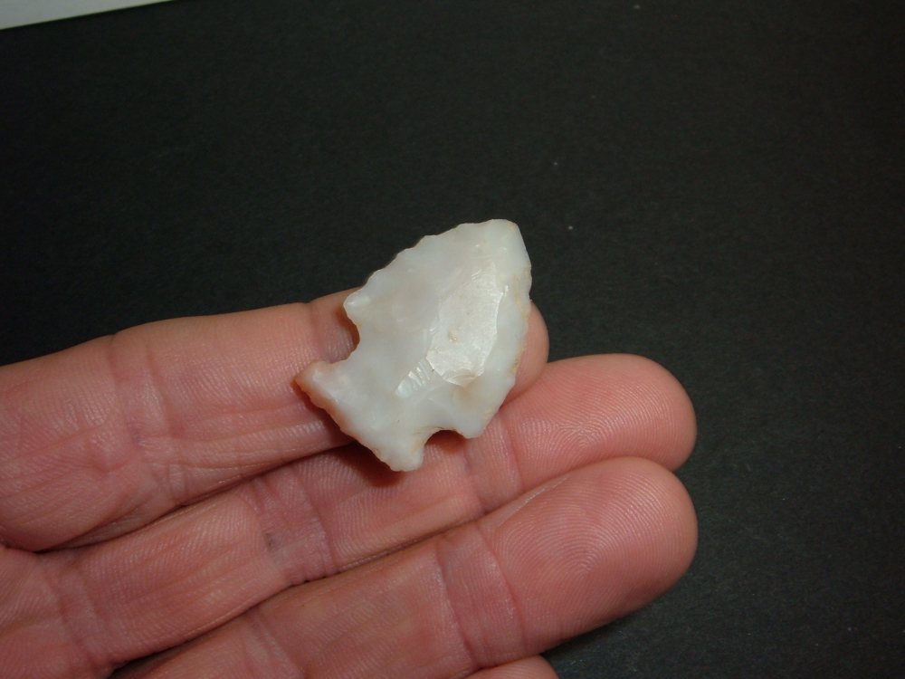 THIS FINE LITTLE ARCHAIC SIDENOTCH POINT ONCE RESIDED IN THE FAMOUS BOB CONVERSE COLLECTION AND MEASURES 1 1/4"! MADE FROM BEAUTIFUL FLINT RIDGE CHALCEDONY THIS WAS FOUND IN COSHOCTON CO.OHIO AND IS PICTURED ON PAGE 140 OF "THE ARTIFACT COLLECTION OF ROBERT N.CONVERSE. A BEAUTIFUL COLORFUL LITTLE SIDE NOTCH FROM ONE OF THE BEST KNOWN COLLECTIONS IN OHIO!!!