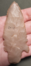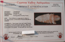 This large, multi-notched Tangipahoa point is make out of translucent novaculite. It was found in St. Augustine Co., Texas and comes with a Carlos Black COA. This point is similar to the Evans point and is found from Mississippi to Louisiana and very rarely in east Texas.