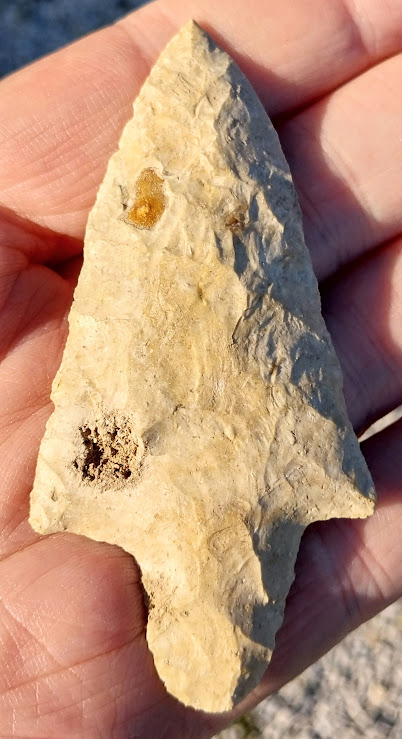 This large Adena blade has numerous fossil inclusions. It was found in Hernando Co., Florida and comes with a Dwain Rogers COA.