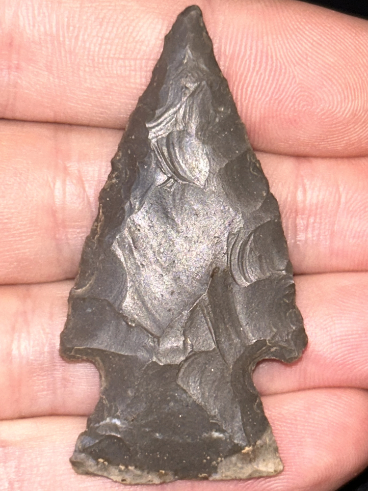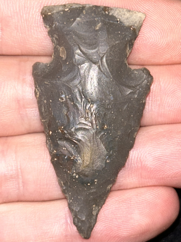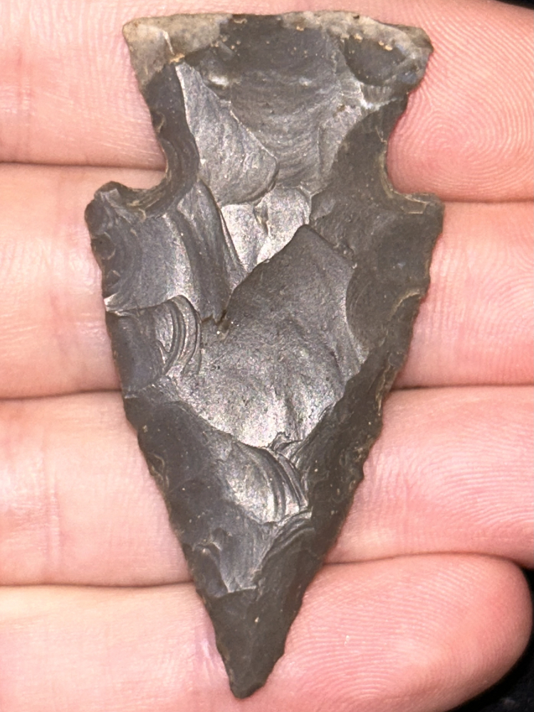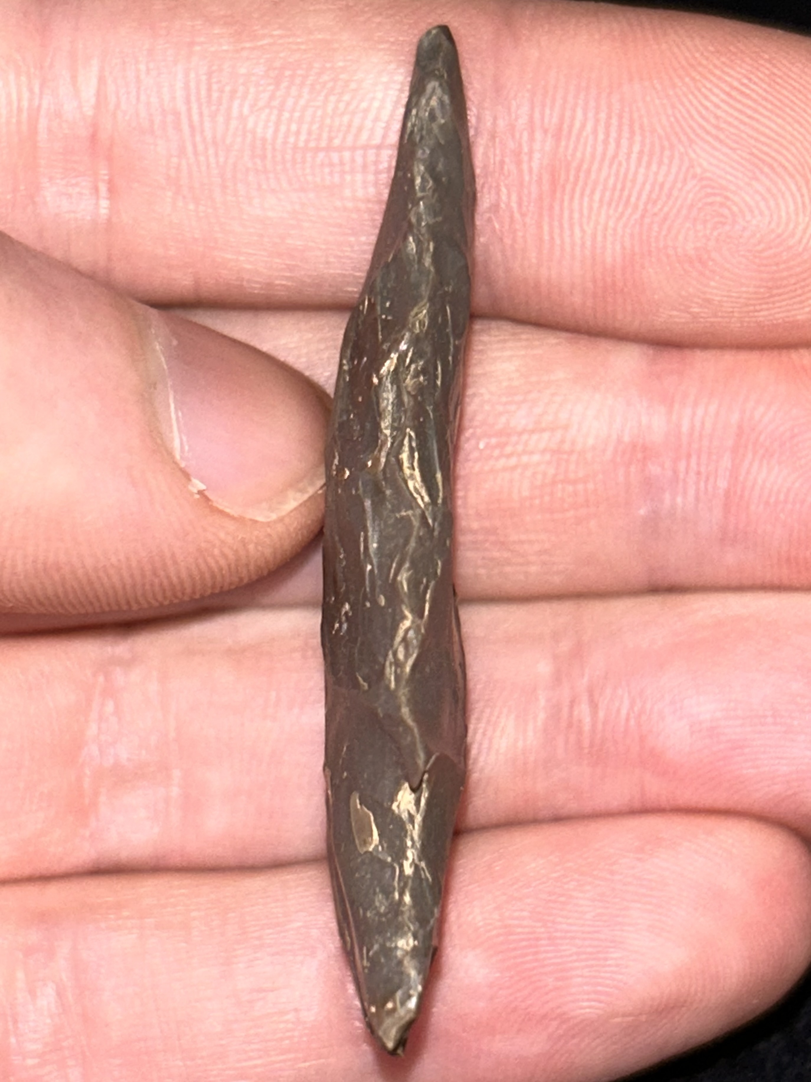 A fine Bakers Creek found in central Kentucky. Made from attractive semi glossy grey Hornstone. Very well made with classic form.