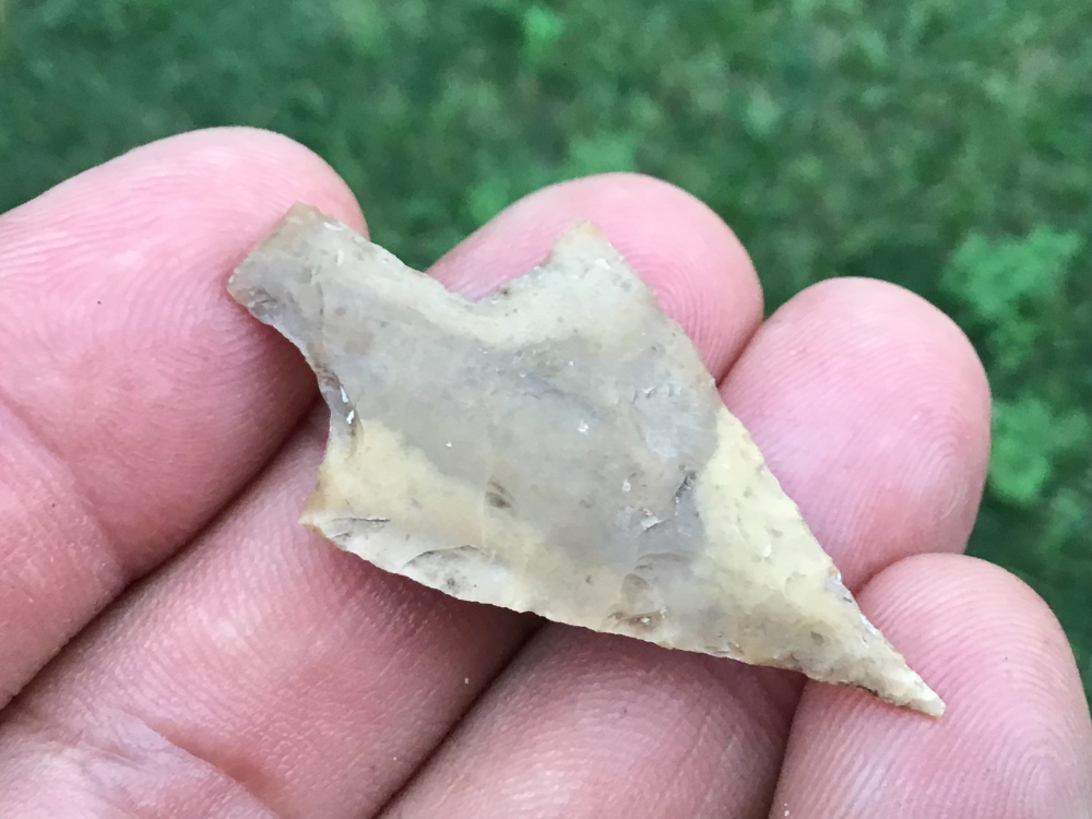 This is a very thin example with a needle tip. Recovered in Gillespie County, it has fine barbs and a long contracting stem. It comes with a Carlos Black COA and I have the shipping.