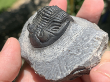 The matrix is 3”x 2 1/2” and the trilobite is 1 5/8” long .