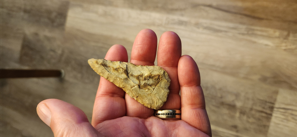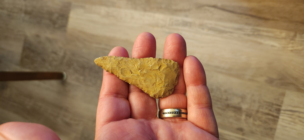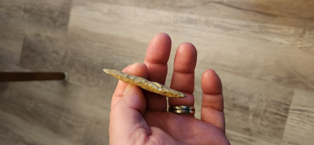 Nice rhyolite Cobbs . Rowan co NC. An early archaic blade. 2 and 3/4" long. Creek stain on one side. Guaranteed authentic. $5 shipping.