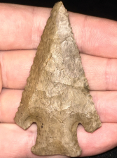A very fine Bakers Creek found in Fleming County, Kentucky. Made from colorful Boyle chert that is well patinated with nice fossil inclusions. Great workmanship and form with a needle tip.