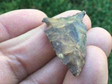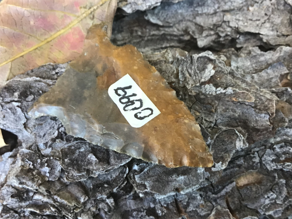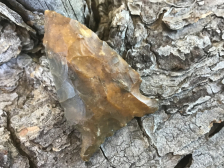 Recovered near Cypress Creek in Harris County, this Keithville has heavy creek staining and left hand bevels. The base is ground with heavy thinning strikes. I have the shipping and it comes with a Bill German coa.