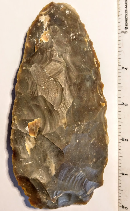 This San Gabriel Bi-face Preform is made of Edwards Plateau chert and is semi-translucent around the edges. It was found in Kerr Co., Texas.