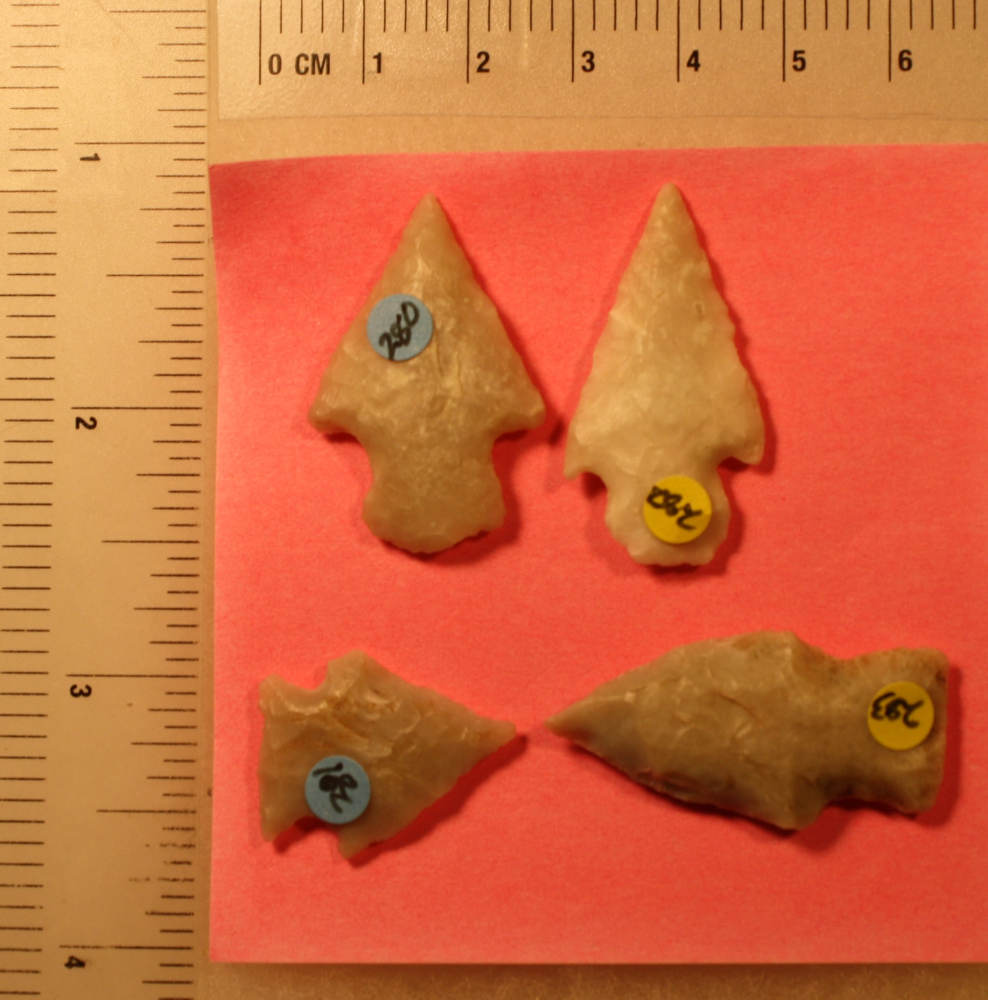 These four points are made of a white crystalline material from far West Texas. These were found together in Zapata County.