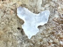This diminutive Toyah comes out of the Robert Haynes Collection from Brewster County. It is completely translucent made of Chalcedony and has complete barbs and tip. Jonathan Swift would have been aghast since Brewster County is the largest county in Texas. I have the shipping.