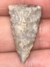 A very fine Fort Ancient triangle found in Fayette County, Kentucky. Made from good quality light colored Boyle chert. In perfect condition with great symmetry and serrated edges. Ex: Zach Smoot collection, pictured in Who’s Who in Indian Artifacts #12 page 604.