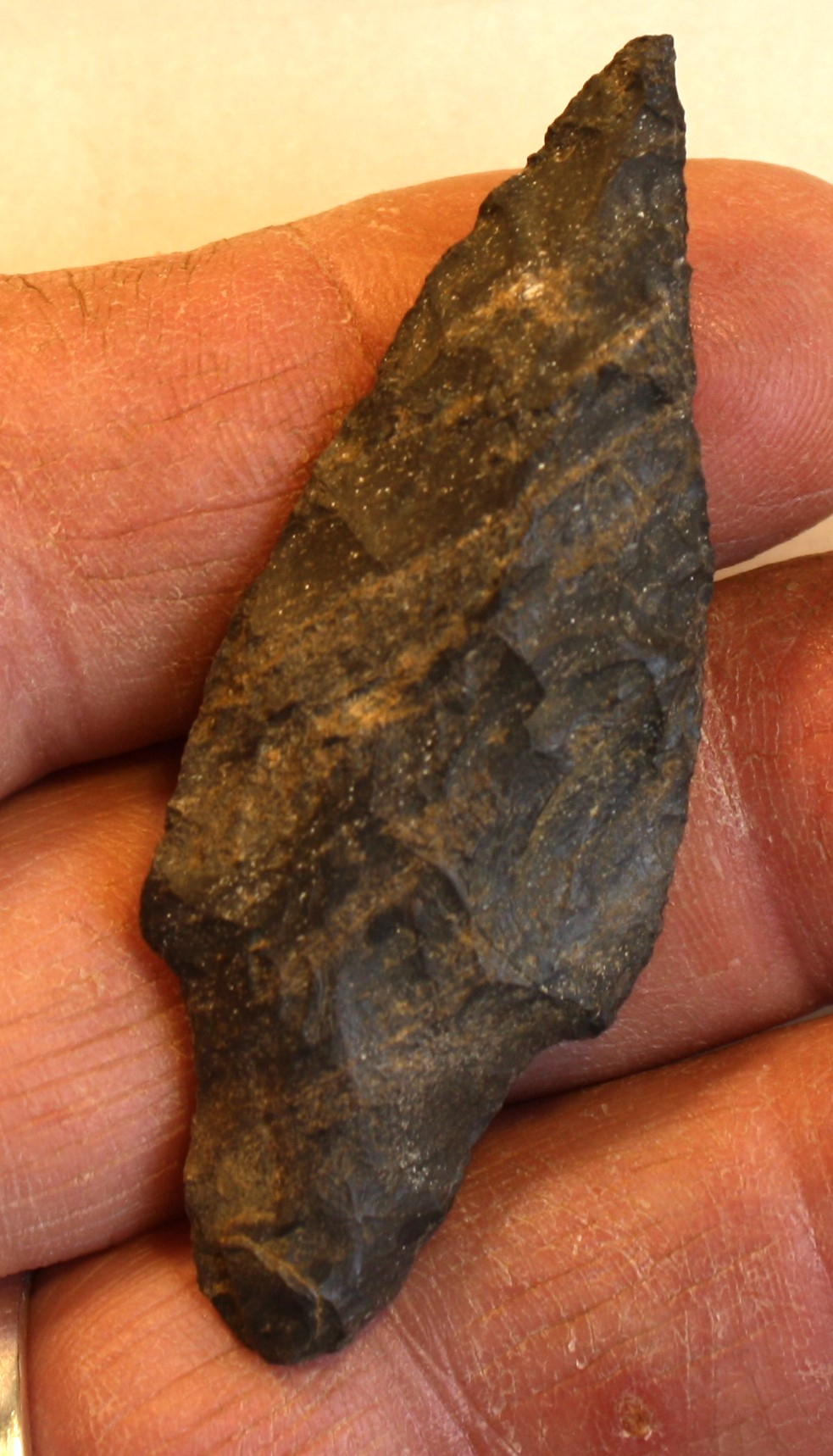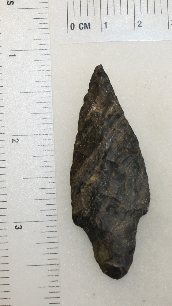 This artifact is made of a dark black, charcoal, and gray petrified wood material. This type of petrified wood is all over the East Texas Piney Woods Region. Due to the nature of the sandy soil composition, petrified wood was a common tool making material in the region.