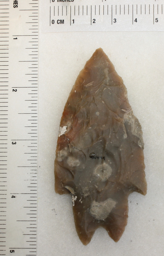 The material appears to be a two tone brown Edwards Chert, with some spotty patina and compositional variance. It is also translucent which highlights the fossiliferous nature of Edwards Chert.
