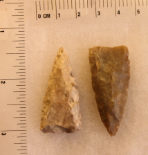 This pair of Tortugas was unearthed in Cherokee County, Texas. Tortugas are a transitional point that were used in both arrow tips and dart points.