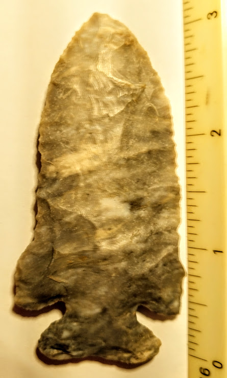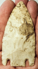 This large, well-flaked Thebes point is made from Coshocton chert and was found in Ohio. It comes with a Jerry Dickey COA.