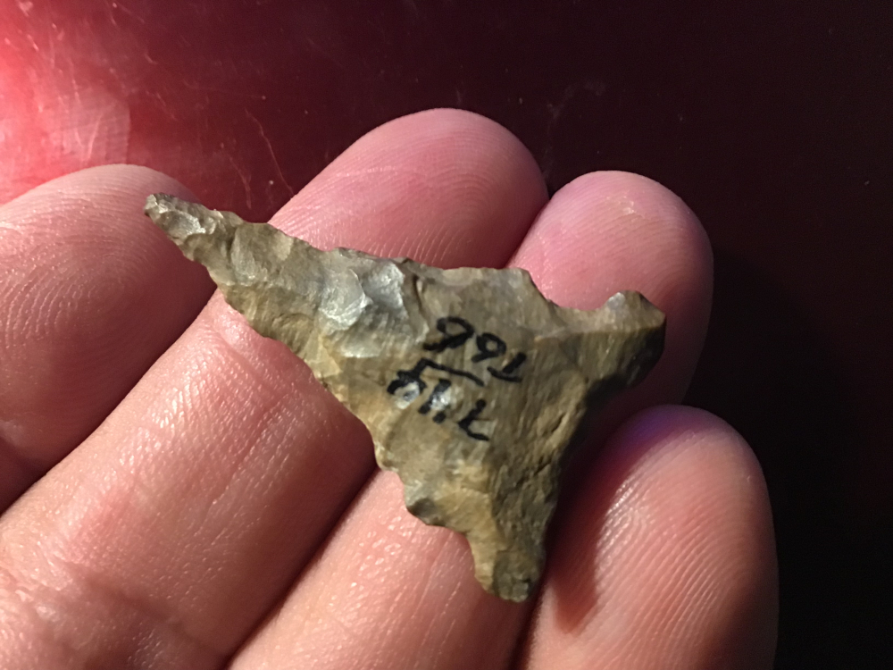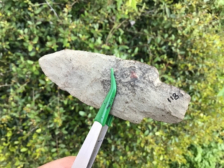 This is a fine example of the Keithville type of San Patrice. Recovered in Sabine County, it has a nice tip and heavily ground base and stem made of Petrified Wood. The base is heavily thinned and it comes with a Bill German coa. I have the shipping. 1.5 x .9375