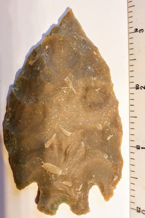 This large Montell Knife is made out of a semi-transparent Edwards Plateau flint. It was found in Llano Co., Texas and comes with a Dwain Rogers COA.