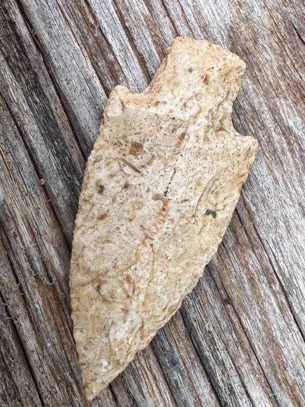 Recovered in Bexar County, this Delhi Point shows heavy use wear on the edges to a nice tip and heavy patina. There are several fossil inclusions. It comes with a Bill German coa. I have the shipping.