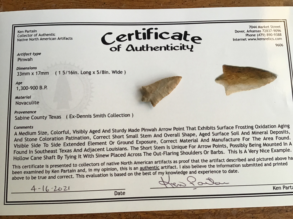 Outstanding example from Sabine County, it is well flaked free of any nicks or dings with great patina. It comes with a Partain COA and I have the shipping.