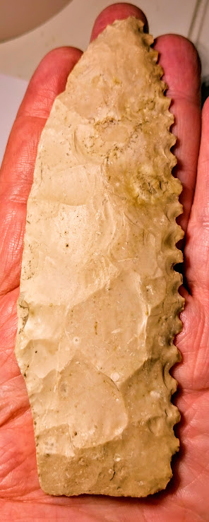 This rare, Serrated "Saw" Blade is a hard-to-find artifact, as all you collectors specializing in rare artifacts know. This rare blade was found in Montgomery Co., Missouri and comes with a Jerry Dickey COA. You'll seldom find one of these rare artifacts offered for sale, so don't let this one get away!