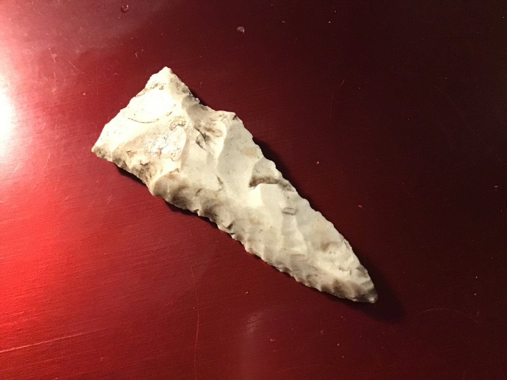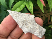 This group has a nice little Langtry with one side still covered in cliche. I believe it will come off with an overnight soak. The group also has a small but very nice Darl with right hand bevels. There is also a Triangle made of quality chert with a flute on one side. It does have an impact fracture on one lateral edge. They are South Central Texas. I have the shipping and will guarantee authenticity and satisfaction.