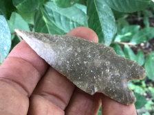 Outstanding deep base with pressure flaking on the sides of the base, this Pedernales has 5 points intact with heavy patina to a fine tip. The material has white fossil spots. I have the shipping and will guarantee authenticity and satisfaction.