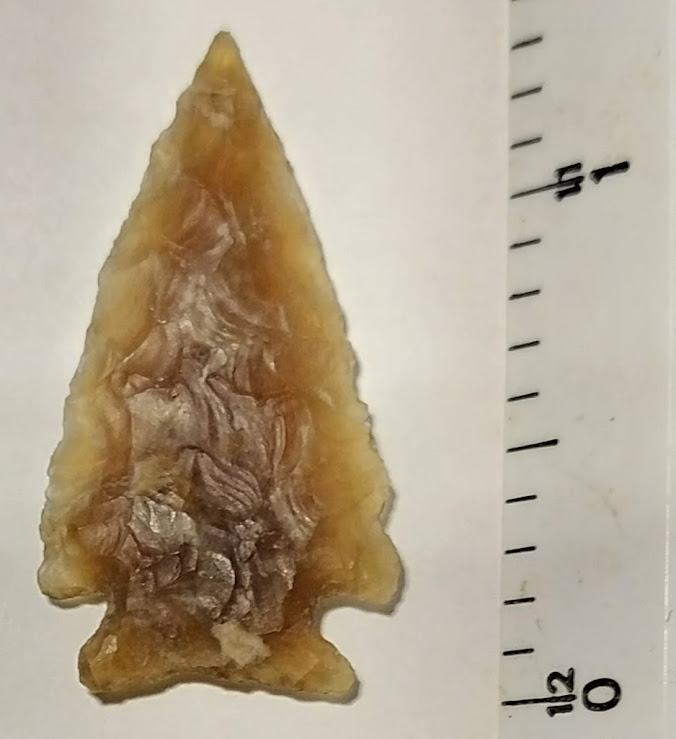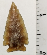 This extremely thin, Knife River Flint Galt point is very well made and very symmetrical. It was found in Morton Co., North Dakota near the town of Mandan.