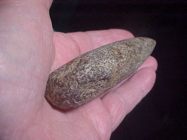 Out of the Union County, Illinois, area--Anna, IL--granite and measuring 4&1/8" by 1&15/16", but only 1" max thickness. While the bit is 'use dulled' , it's really well polished, and very slightly flared. The form is excellent, only on the heel do you see a 'rougher' form--and that's due to the shape of the granite river cobble the maker (Mississippian Culture, I'm supposing) began with. Every detail is guaranteed authentic. Shipping is $10.00, checks or M.O>s are welcomed. Please note I do not take paypal, though--Roy A.