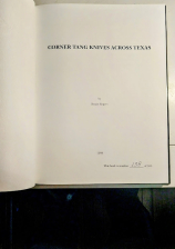 This is copy number 138 of Dwain Rogers' classic "Corner Tangs Across Texas flat signed by the author -1 of 500 original copies written by the acknowledged expert on Corner Tang Knives. Needless to say, this is a rare book. Don't miss your chance to own this signed copy!