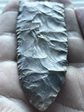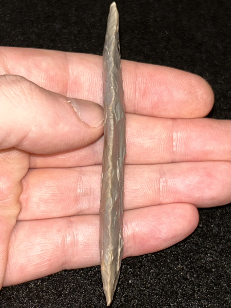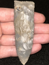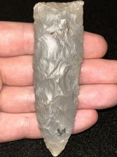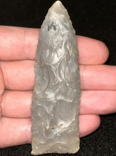 An excellent Archaic blade found in Harrison County, Indiana. Made from very glossy quality grey Hornstone. In great condition and finely made.