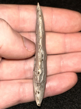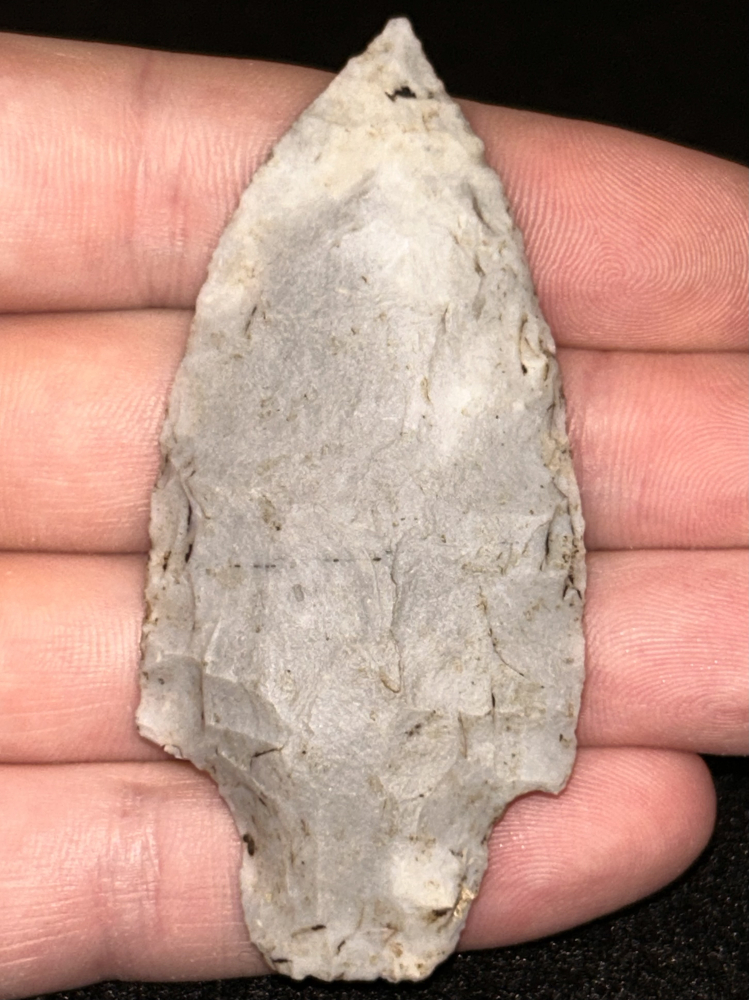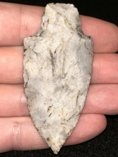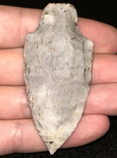 A super nice Belknap found in Williamson County, Illinois. Made from well patinated grey-white Burlington chert. Thin and nicely made with good flaking.