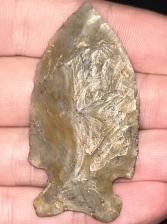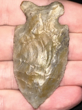 A fantastic Big Sandy found near Tell City in Perry County, Indiana. Made from colorful and highly translucent Derby chert. Well made and thin with great workmanship and style.