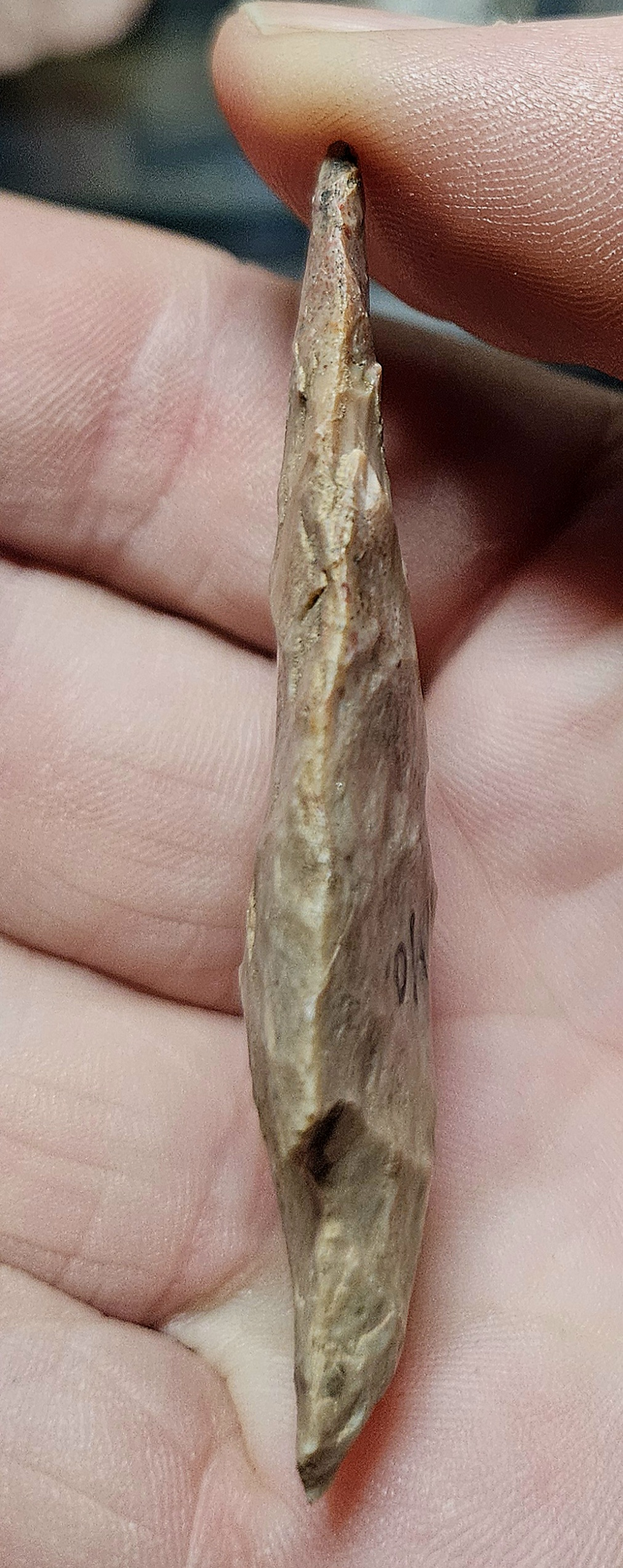 Excellent Ferry point from Missouri. Very well made from beautiful peachy pink chert. Measures 2 1/8 inches long. Handsome point.