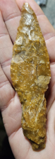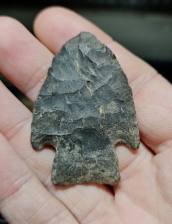 Nice big slough point from Dickerson Cave in Todd County, KY. Extremely thin and very well made with minor ancient resharpening. Measures 1 7/8 inches long.