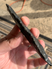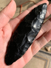 A large 5 1/4” Obsidian Bipointed Aztec Blade