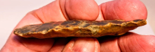 This Creek-Stained Beaver Lake Blunt point, possibly converted to a scraper, exhibits excellent paleo flaking. It was found in a creek in Shelby County, Kentucky, and exhibits patina associated with lengthy exposure on one side relative to the other, resulting in one side being darker than the other. It does not have a COA but it's a no-brainer as far as authenticity is concerned. A very unusual paleo artifact for those interested in unique pieces.