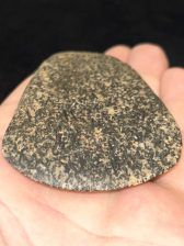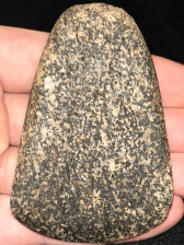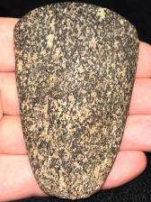 A super fine Adze found in Posey County, Indiana. Made from attractive black and white hardstone with good polish. Finely crafted and in excellent condition with great symmetry and bit.