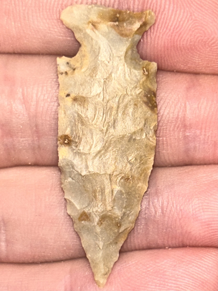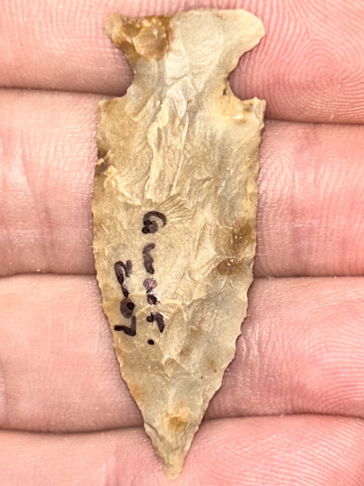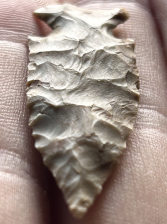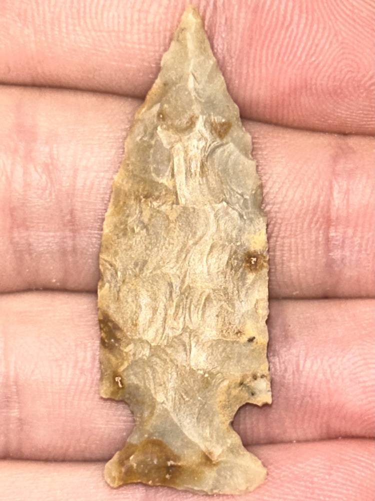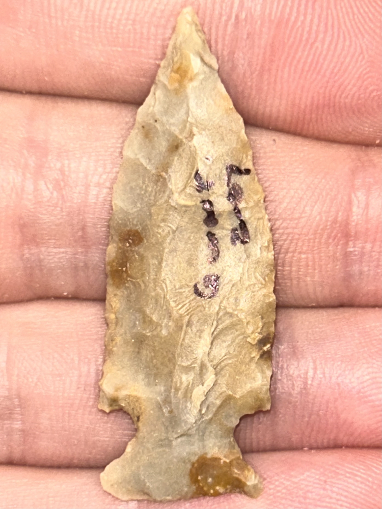 A very nice Jacks Reef found in Marshall County, Alabama. Made from a semi glossy orange-tan colored chert. Extremely thin and finely flaked with a sharp tip.