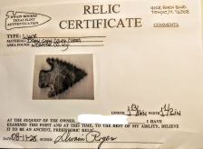 This highly serrated Wade Barbed point has classic form and symmetry for its type. It was found in Webster Co., Kentucky, and comes with a Dwain Rogers COA. It's evident from the notching that this point was crafted with great intention and care. The base is highly ground and thinned, as is typical for this type