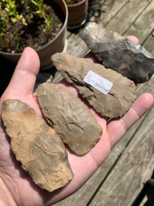 The largest example is 3 1/2” long, and has a few modern dings on it, all found in Davidson co TN