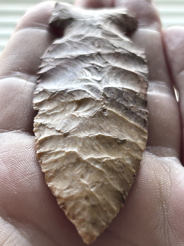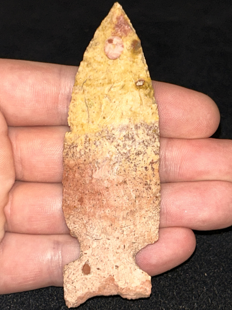 A fabulous Graham Cave found in Fulton County, Illinois. Made from colorful heat treated Avon chert. Extremely well made with great flaking and good size.
