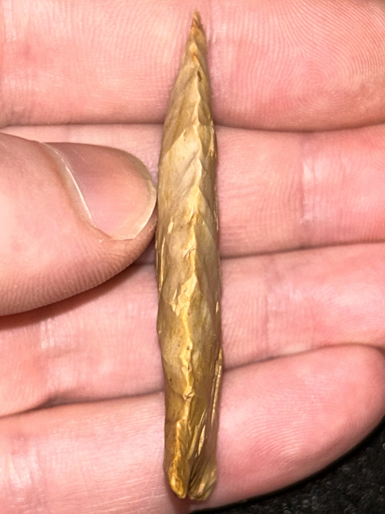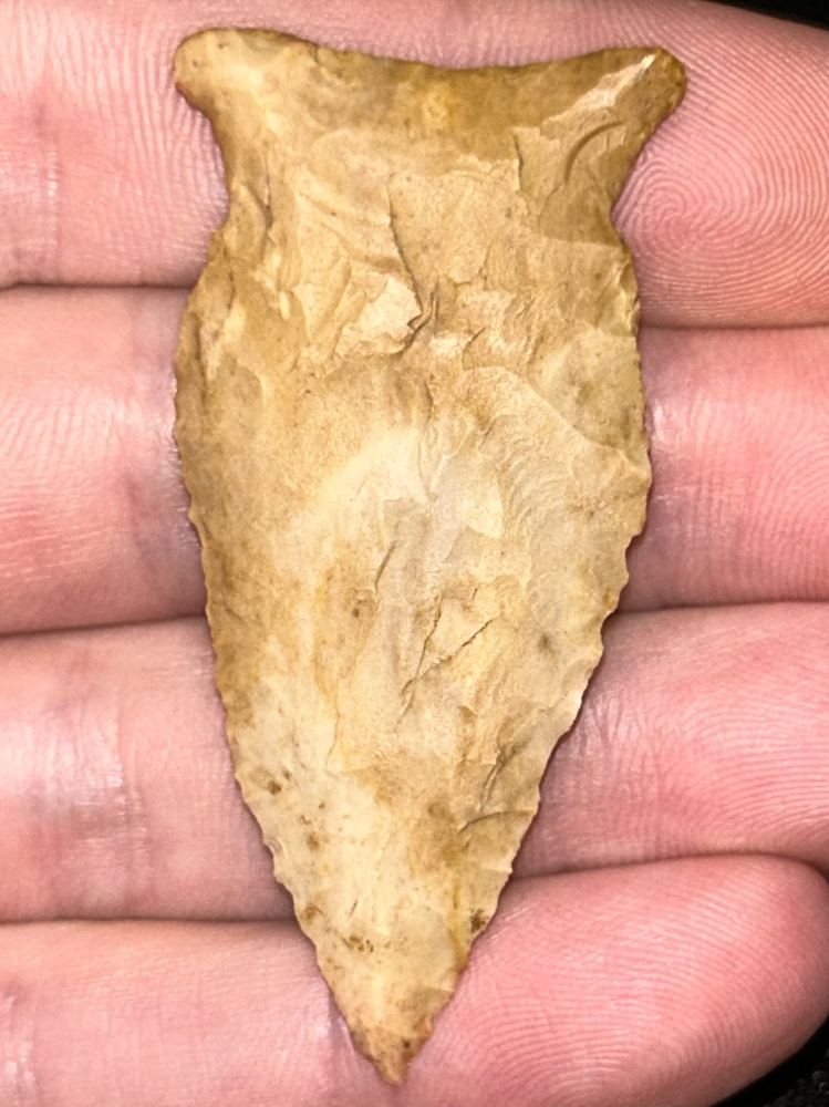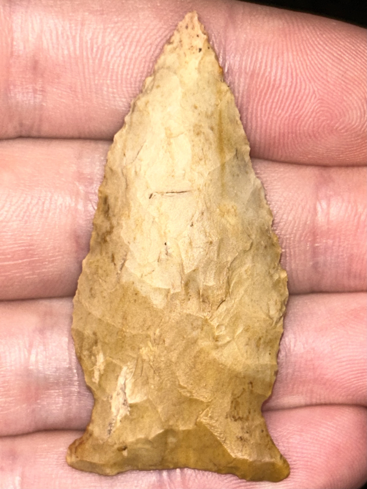 A fantastic Greenbrier found by Bo Cable in Decatur County, Tennessee. Made from well patinated semi glossy Buffalo River chert. In excellent condition and nicely made with great flaking.