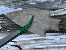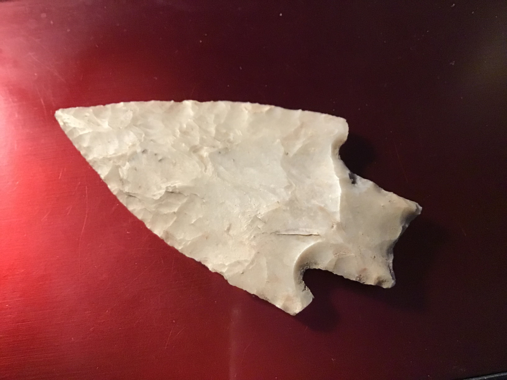 This is a nice sized Marshall recovered in Bandera county. It is thin and well flaked with small ancient dings on the barbs. Semi-Translucent, it has a good tip with fine pressure flaked lateral edges. I will guarantee authenticity and satisfaction.
