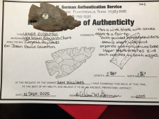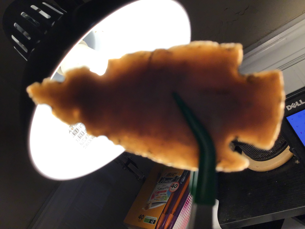 From Coryell county and out of the Jason Gould Collection, this Lange Eccentric is semi-translucent with additional notching near the tip. I have the shipping and it comes with a Bill German coa.